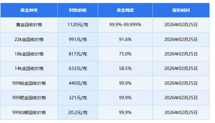 黄金首饰回收价格查询今日