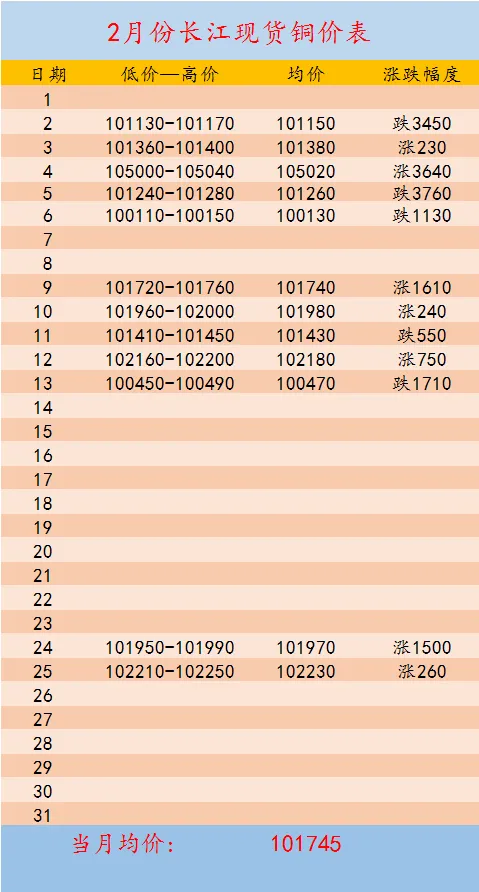 >【铜价】2月25日长江现货行情