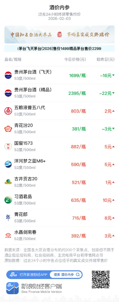 本文价格数据采集自2026年2月20-25日主流电商平台及经销商报价,实际成交价可能因渠道、促销活动及地域差异有所不同。白酒消费请理性适量,未成年人禁止饮酒。