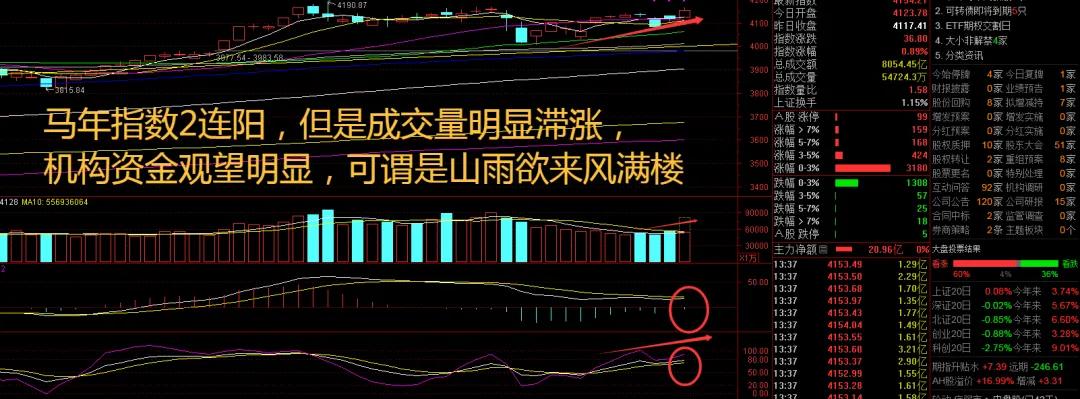 A股出现马年后2连阳的走势,这与外盘节中和节后走势遥相呼应,外围市场看,美股进入较为明显的震荡行情,日韩股市因AI叙事持续历史新高,这种比价效应下,A股面临的外围环境依然较好。2026年春季会议即将开启,市场将会进入到新的混沌期,寻求新的投资方向,这也将可能会是贯穿全年的投资方向,当前指数的强度取决于存款搬家的力度,关注买入机会追涨并无必要。
