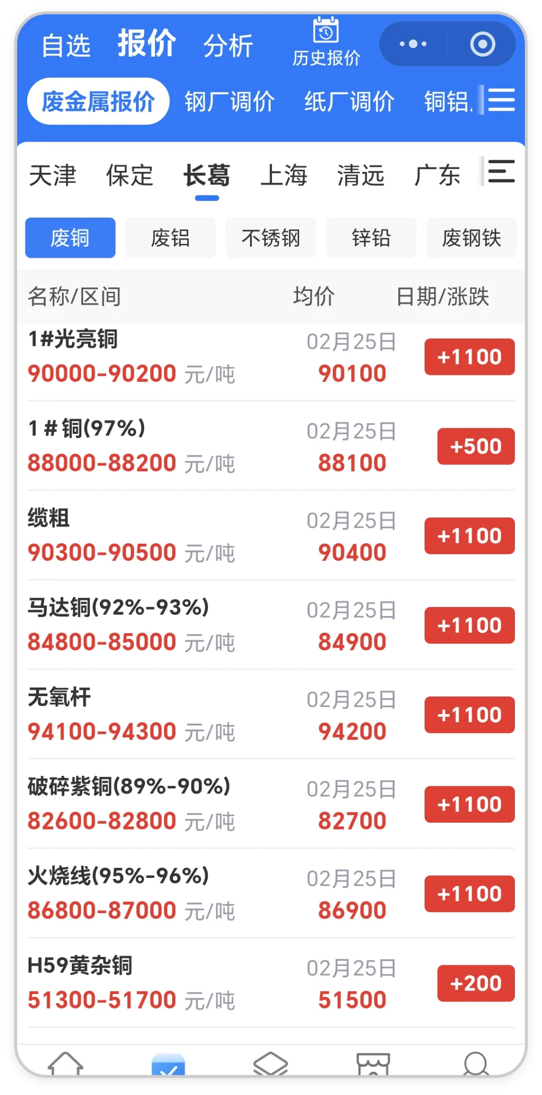 看全国地区废铜价格