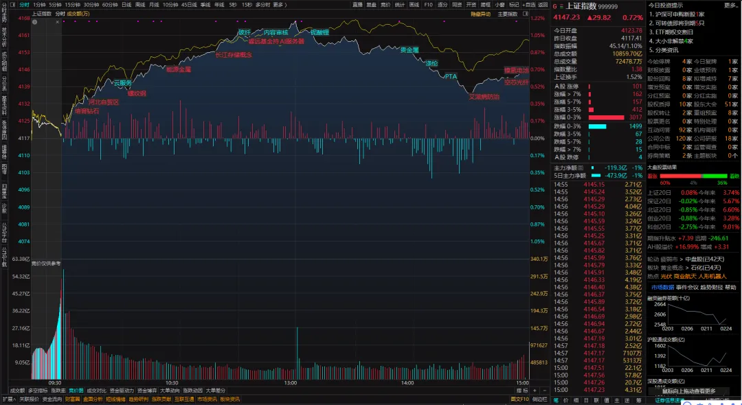 涨跌家数比 | 超3700:1363(约2.9:1) | 普涨格局,情绪回暖 |