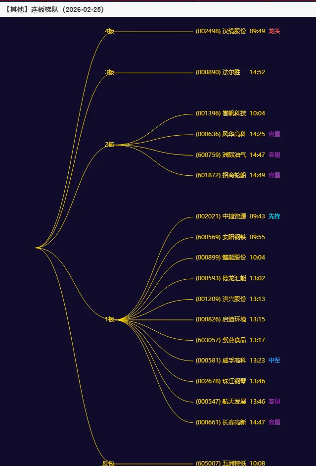 连板梯队完整:最高连板豫能控股5连板,汉缆股份4连板,法尔胜3连板,2连板个股众多,连板股总数17只,短线接力情绪良好。