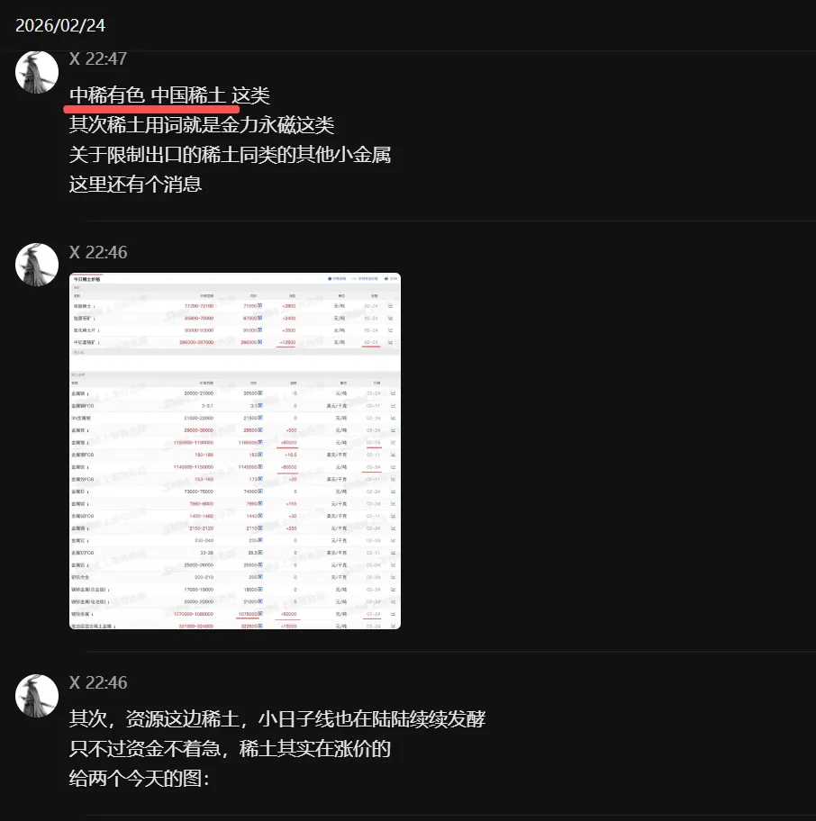 昨晚关于川普争夺稀有金属定价权的这个消息