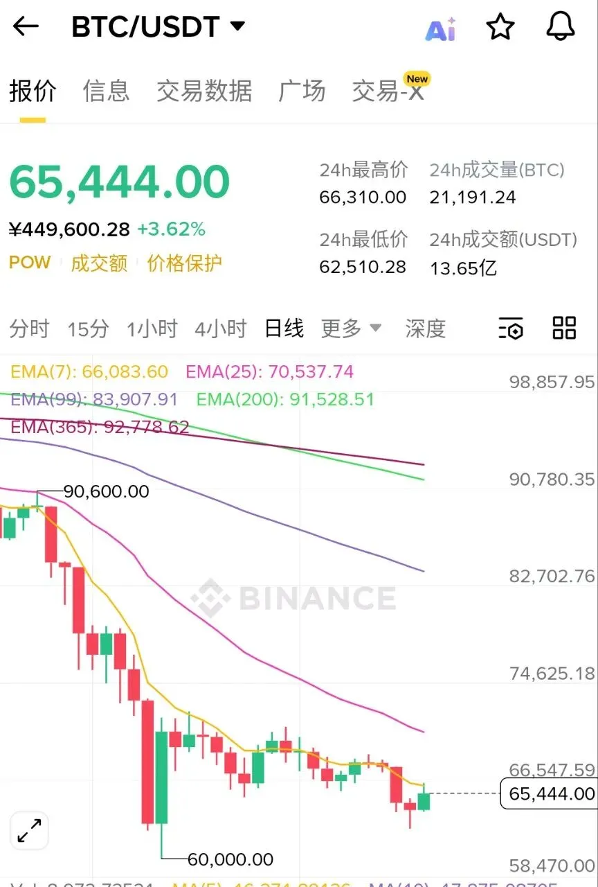 - 短期(1–2日):反弹动能依赖66,572突破与站稳。站上则上看67,200–67,800;若回落破65,000,或重新测试62,500。