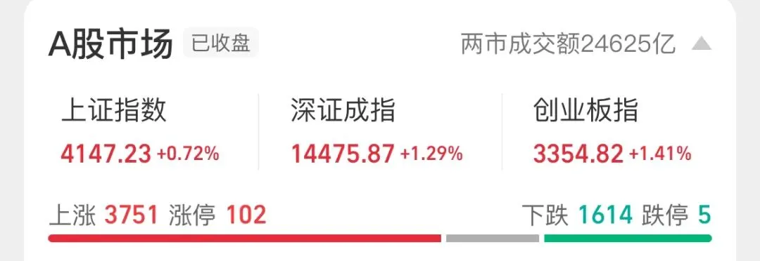 • 两市总成交:2.46万亿元(续放量);上涨超3700家,下跌约1600家