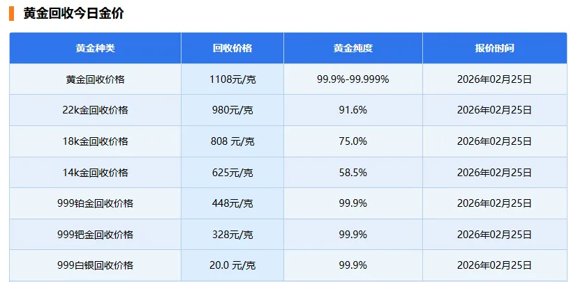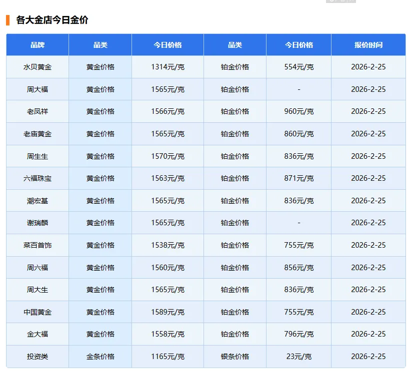 >2月25日黄金价格行情走势图
