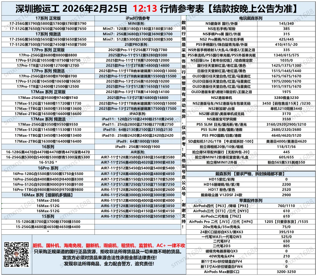 市场行情时刻波动,不一定全部更新到位,报价仅供出货参考。每晚会群公告公布实际结算价。我们是代卖模式,非定价接货,非咸鱼/顺丰上门打款。请知悉!感谢各位老板的信任与支持!
