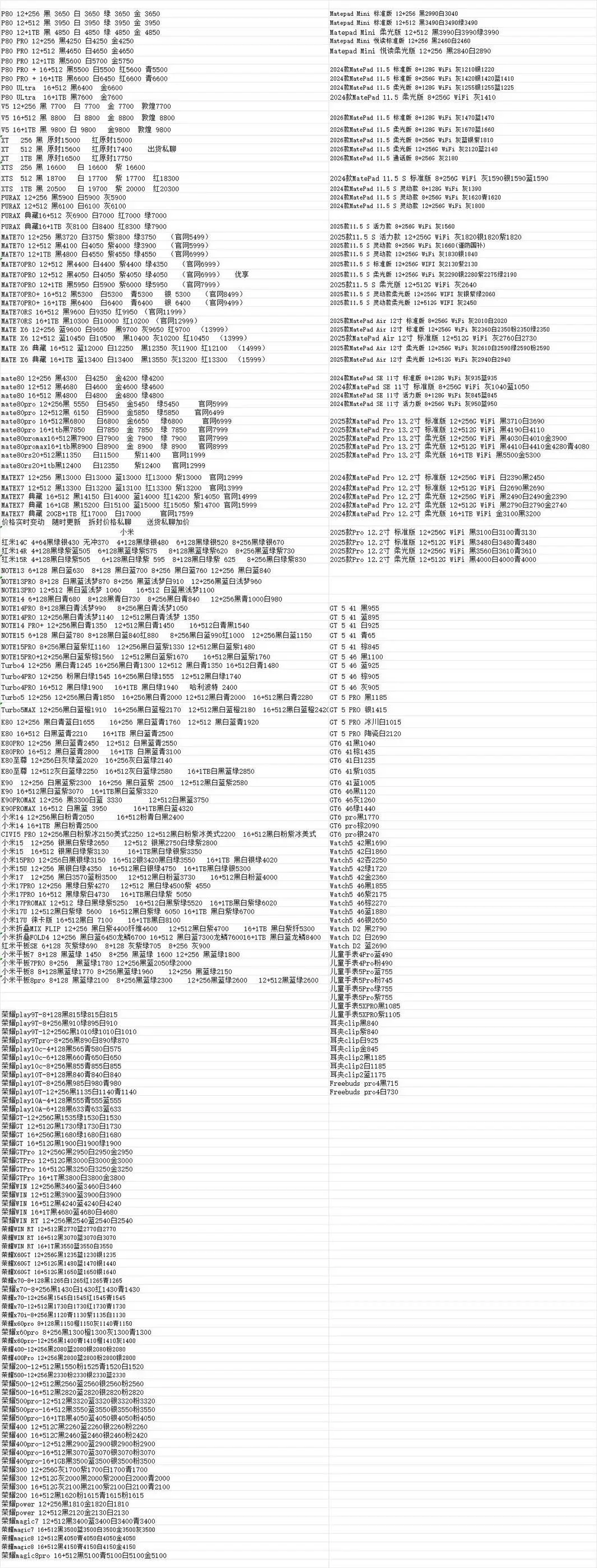 荣耀WINRT12+256黑2540蓝2540白2540