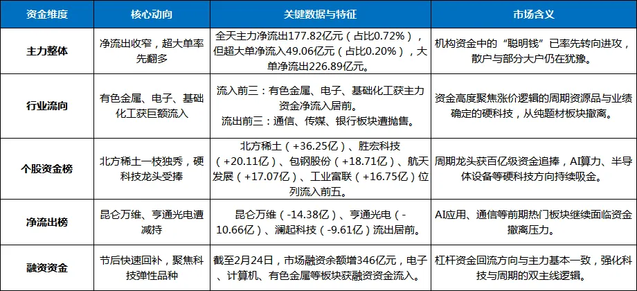 二、 资金流向深度解析:主力调仓加速,有色金属成吸金王