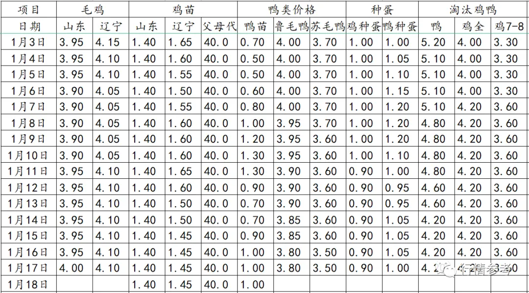 3、肉鸭数据:北方鸭苗报价区间在0.9-1.0元/羽;目前投放成本约3.8-3.85元/kg;未来3天进厂的合同鸭价格成本总体在3.85-3.90元/斤区间,本月毛鸭价格整体呈现下调态势。按今天冻品价格测算,保3.93元/斤的毛鸭价格,屠宰当期宰杀效益仍然在盈亏平衡点附近徘徊,随着毛鸭成本的降低,宰杀利润有明显改善。监测屠宰厂分割冻品报价总体弱稳,市场订单趋缓,出货有所减慢,局部市场价格跟出厂价格比倒挂,副产类单品依旧坚挺,局部厂家腿类报价明显松动走跌,规模性订单可议价。屠宰厂库存低位、春节备货提前等因素导致的阶段性供需错位这个利好也得到了较为集中的释放,驱动近期一轮报价连续上涨;然随着多个城市疫情的再度连续爆发以及随之而来的管控一刀切等措施,这几天多个市场反馈出货再度趋缓,局部市场出厂价格和市场价格出现倒挂等情况,总体价格水平仍受制于需求端出货节奏慢和整体不缺肉的大供给环境。
