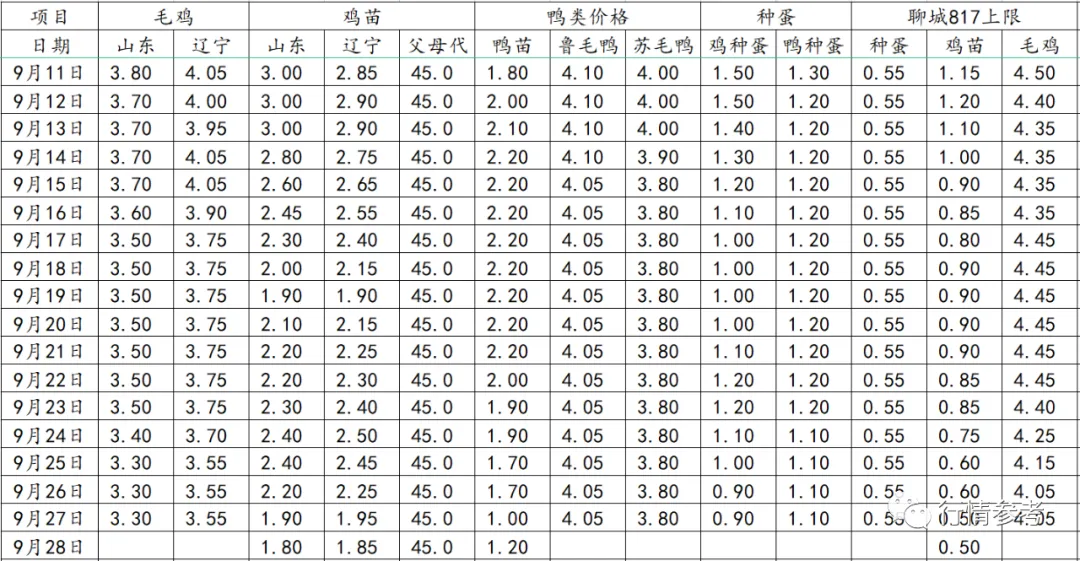3、肉鸭数据:鸭苗报价下跌至1.2元,实际仍存在低走情况。屠宰企业经营承压,继续控抑合同鸭投放价格,以降低经营风险。据实际了解,规模养殖场的补栏刚性需求基础仍是鸭苗价格的一个基础支撑,但目前产品的实际情况仍没有好转,报价持续走跌,屠宰厂持续处于深度亏损状态,对合同鸭价格的限制也频繁出台,中秋节前已有屠宰企业要求合同鸭综合投放成本不得超过4.05元/斤,这两天也逐渐控制到3.8-3.9元上下。未来几天出栏运行价格预计仍将在4.10元/斤上下,总体继续呈现回落态势。目前冻品价格只能保3.80元/斤上下,随着毛鸭价格仍处相对高位以及鸭毛、鸭肠结算价格的下调,屠宰厂当期宰杀效益仍处于明显的亏损状态。近期厂家接连让利刺激后补货情绪有好转,但总体来说市场经销商对未来价格走向和运行空间预判依然非常谨慎,即便当下主要单品比如腿类报价很低,但是愿意做批量性存货的比率不是很高,厂家总体销售节奏和库存情况依然承压。10月份供给情况减少不明显,未来产品价格行情仍更大权重的受制于消费和市场走货节奏,屠宰厂已然持续深度亏损,部分主力单品持续明显下跌的阻力也在增加,但上行的动力也明显不足,未来较长时间内总体行情宁低迷不振运行态势可能趋于常态化。