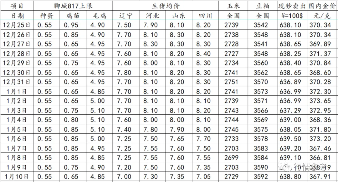 国内疫情频频点状爆发,像是西安、郑州、许昌等地大概率会就地过年,降低返乡,对此终端消费大幅降低;从下游产品经销商心态来看,囤货赔钱,反而快速周转是盈利的,从而大大降低了囤货的意愿,经销商的这种拿货操作,直接导致了屠企库存压力的堆积;受前期毛鸡疫病影响,多数小规格鸡提前出栏,导致当前市场大规格产品减少,小规格产品居多,因此年底备货大规格涨钱,小规格稳定的情况;为了打破市场僵持的局面,屠企曾多次试图上调产品价格,但效果不佳;当前市场的低迷,导致冷链物流有较大可能会提前停运。临近春节,1月中旬以后受春节假期影响,下游产品市场交投节奏或稍有加快,但补货持续性不强,产品价格上行空间依然受限;现毛鸡出栏量一般,毛鸡市场仍显弱势;本月中下旬养户补栏出栏时间基本对应春节后屠企开工时间,从而提振养殖端补栏信心,养殖户对补栏小跨年鸡积极性见好,鸡苗市场走苗计划或将加快,但受养殖成本高位且疫情疫病养殖难度的影响,养殖户无法从原料控制成本,只能通过下压鸡苗价格来降低养殖成本,使自己有利可赚,预计短期内鸡苗价格上行空间有限。