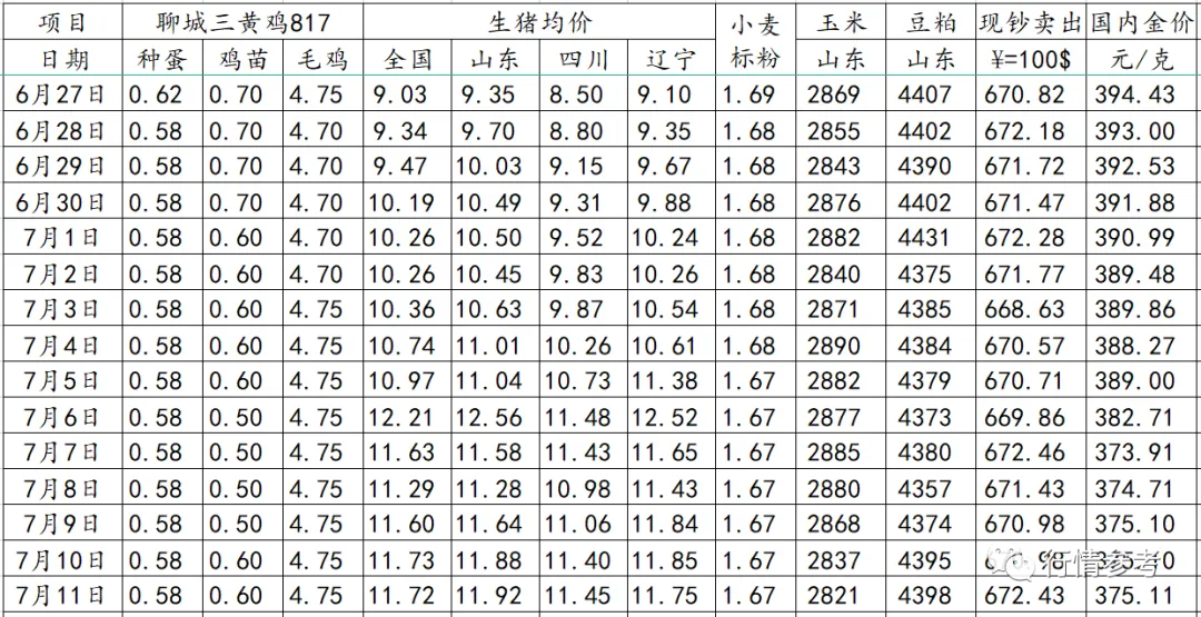 2、817肉鸡:当前市场种蛋0.59元/枚左右,本周种蛋价格跌后反弹,孵化场上孵积极性减弱,预计下周种蛋价格以稳为主,跟据鸡苗价格上下振荡调整。当前817市场鸡苗0.6元/羽左右,本周受毛鸡价格振荡调整作用影响,加上全程饲养在高温、高湿环境下养殖户补栏积极降低,个别孵化场抽毛蛋调节供应量,鸡苗价格跌后回调,预计短期内鸡苗价格平稳或稍有向上调整,整体调整有限。但本周毛鸡供应量基本持平,终端出货较慢,屠宰厂收购积极性一般,周内毛鸡振荡调整,预计下周毛鸡价格稳中振荡调整。