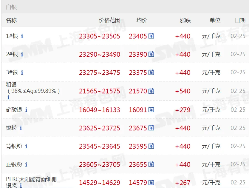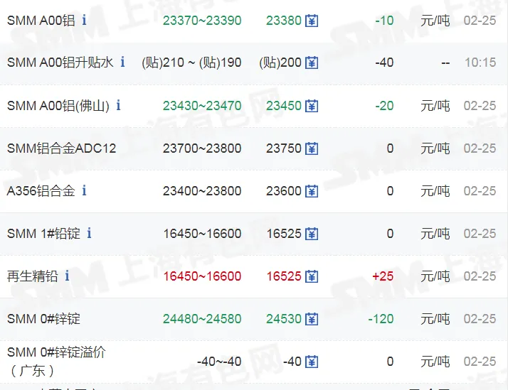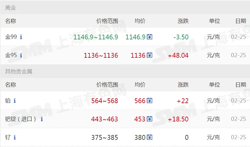 >20260225金银铜铝价格行情