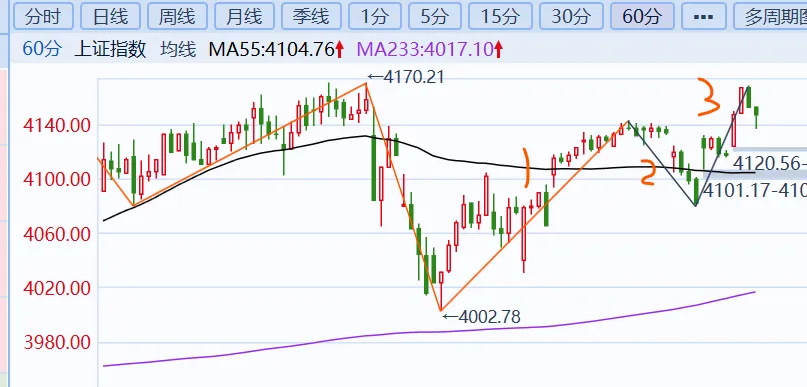 最后再看一下技术K线,从日线级别看不出太大内容,斜率本就可以缓一点急一点,主要看一下60分钟级别。从2月3号开始的上涨段,在60分钟上已经到了第3段式了,当然越到最后一段涨的越猛。