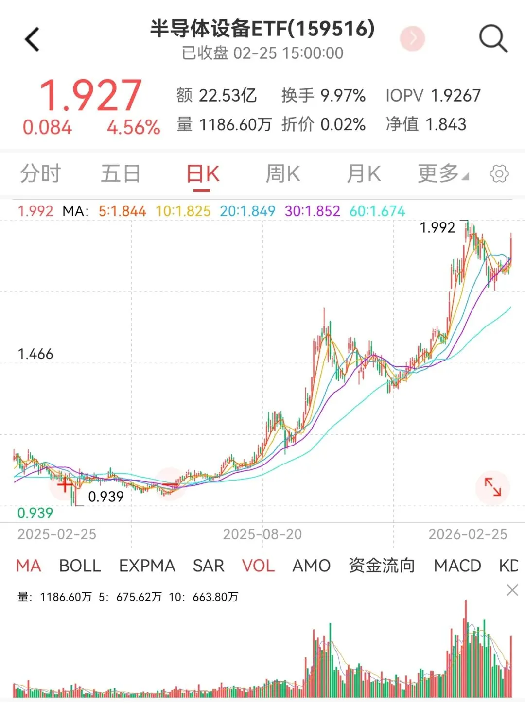 半导体设备ETF(159516)今日开盘下杀后一路上扬,午后再度加速,收涨4.56%。