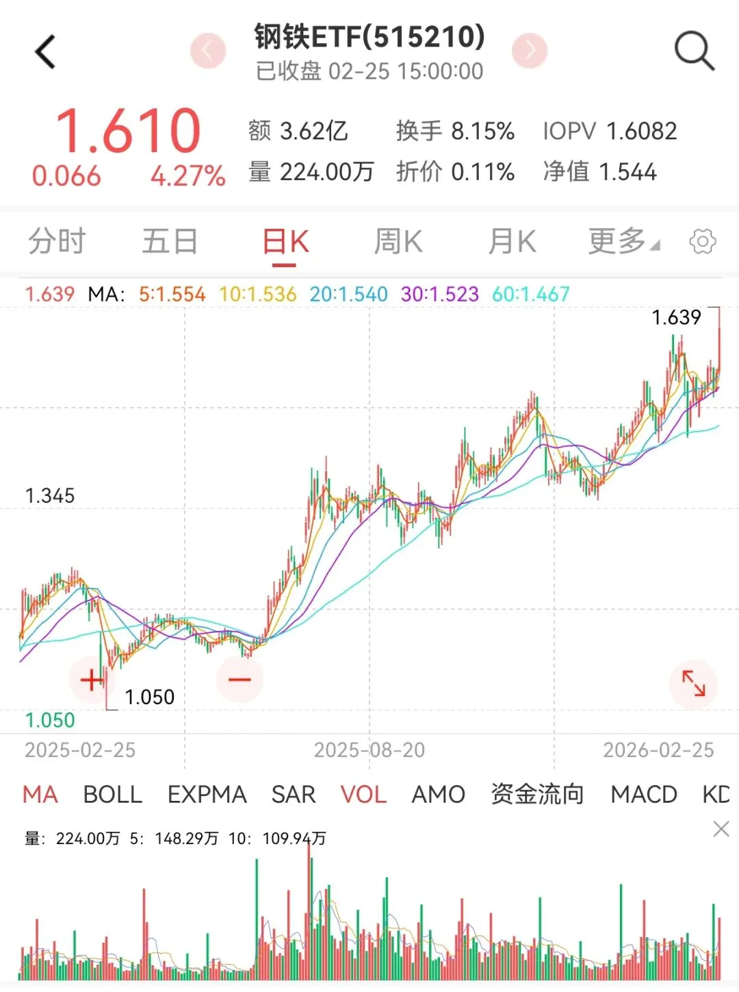 钢铁ETF(515210)大涨4.27%。