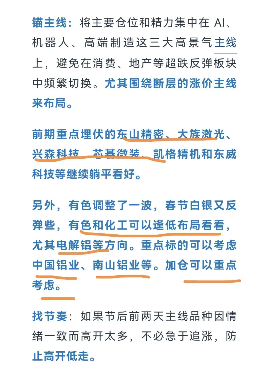 先看前几天文章,推荐重点标的,今天整体都吃到大肉了节后A股三大主线:AI应用放量、机器人量产、算力通胀受益链。