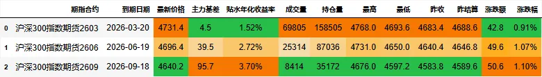 期指合约信息:
