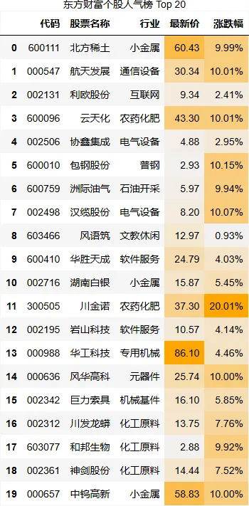 东方财富个股人气榜