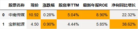 股息率个股筛选