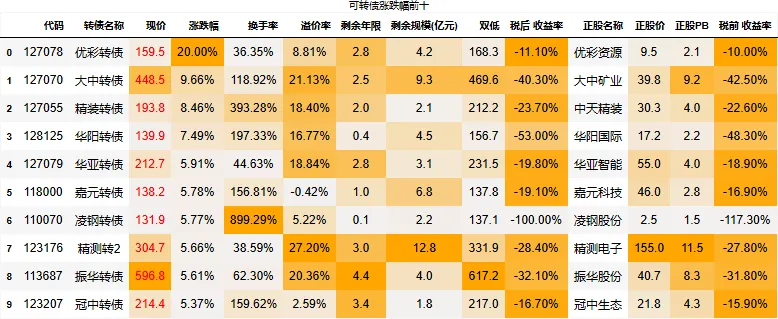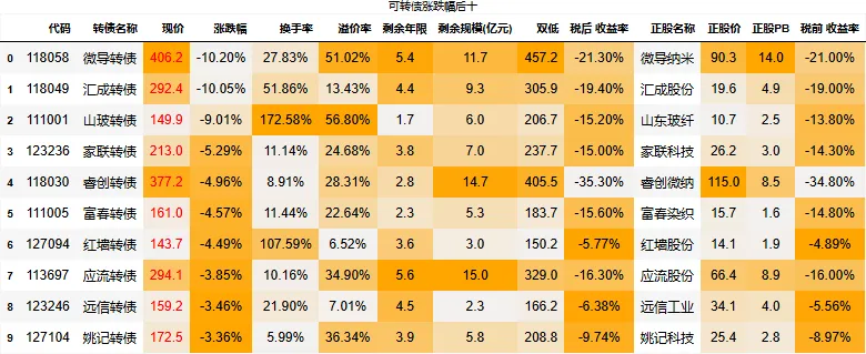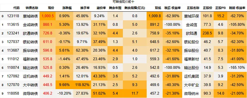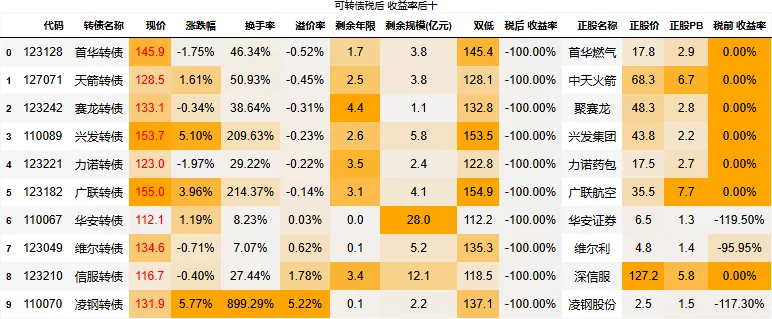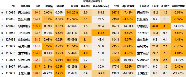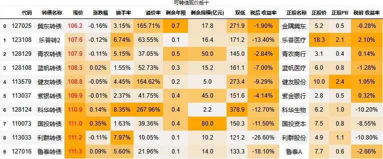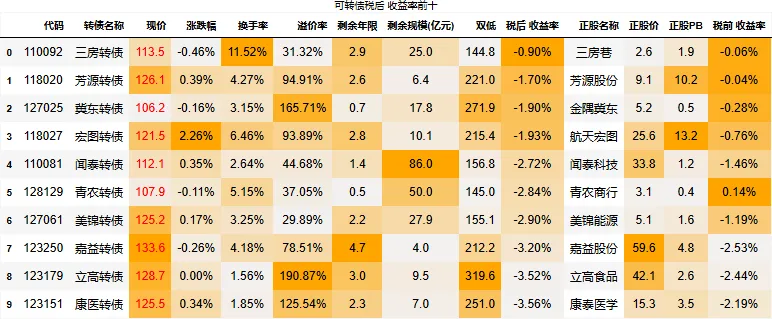 到期税后收益大于0的转债数量:0只