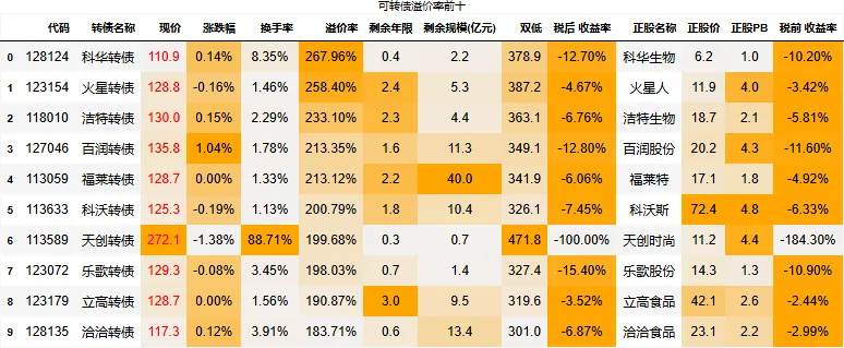 溢价率小于20的转债数量:89只