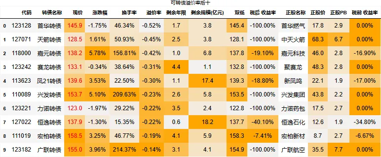 130以上高价转债涨幅中位值:0.01%