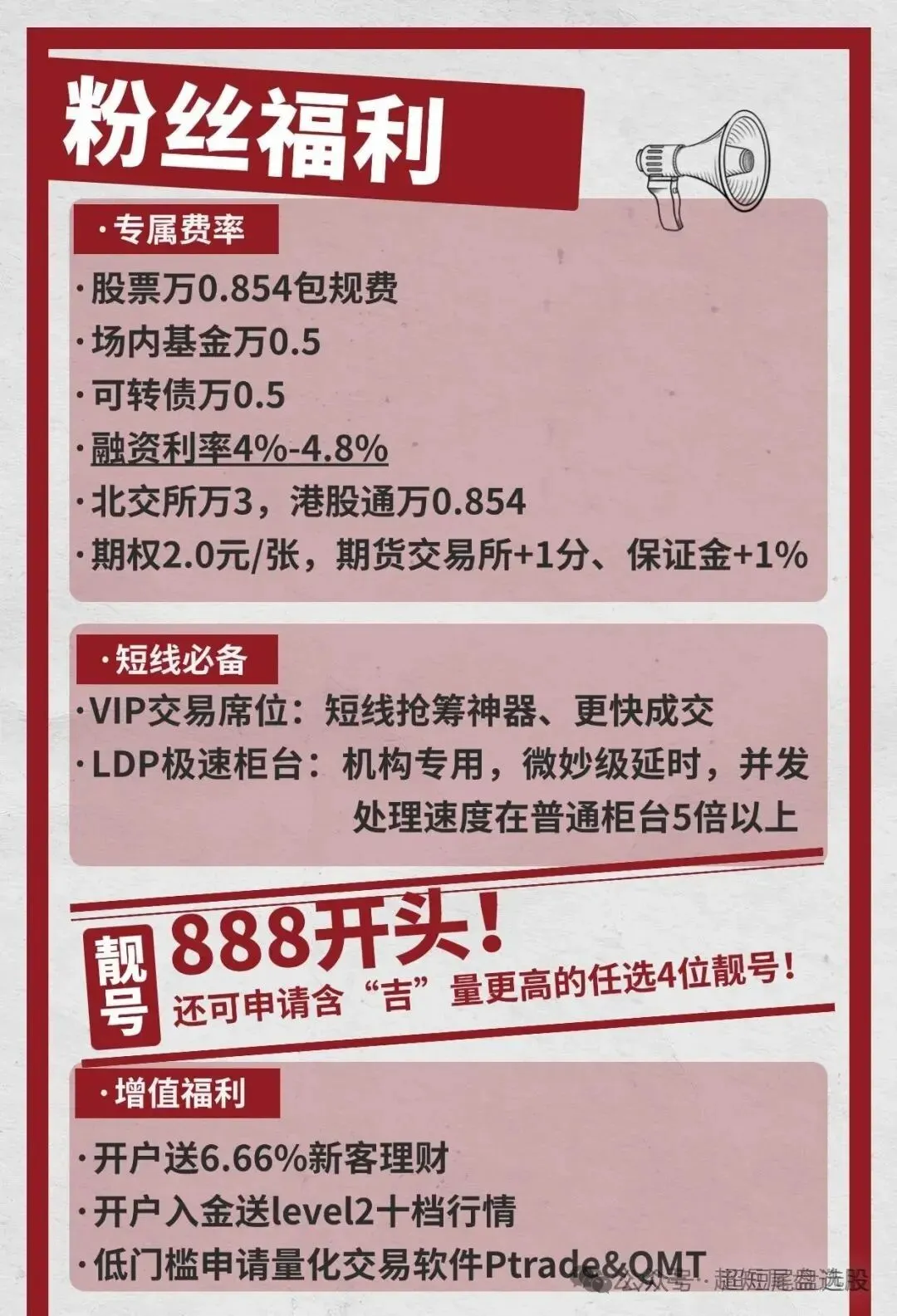上期尾盘买入***716,黑芝*,今天继续缩量回调,选择继续持有,等待反弹换股。上期尾盘买入***168,通灵**,最近随着板块大幅调整,找机会择机换股。今日尾盘不再买入,期待明日有个好收成。(目标可以在上一篇文章评论区寻找)全文完,感谢有你的陪伴!本公众号所有内容均为个人对市场的理解,只作为实盘记录和分析回顾使用。所有免费分享的内容不构成投资建议,自行买卖控制风险,盈亏自负。最近有很多小伙伴后台私信希望拉个群,能一起交流,结果多加了一些小伙伴就把我的VX小号给永久封了,无奈,有事留言区交流吧。目前铁粉群人数较多,为了防止被VX制裁,对于点赞、点推荐、打赏较多的铁粉不定期发放一些铁粉群门票,希望小伙伴们多多支持,符合条件的我会在后台直接发放邀请。同时也有小伙伴提出需要低佣金的券商,正好对接了一个上市券商,可以提供优惠的手续费率给粉丝,有需要的可以私信我。欢迎大家多多转发公众号,有什么疑问可以在文章末尾处留言,一定要多多点赞+在看哦,你们的支持是我每天更新的动力。