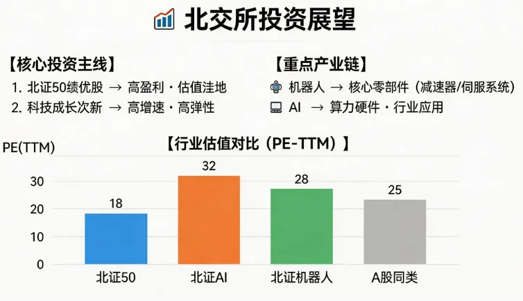 投资主线:北证50绩优股+科技成长次新是两条核心主线,特别是AI和机器人相关产业链