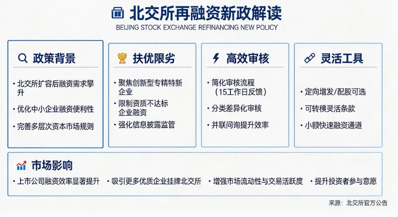 政策亮点:北交所再融资新政"扶优限劣"导向明确,将加速优质公司融资进程,为市场注入新活力
