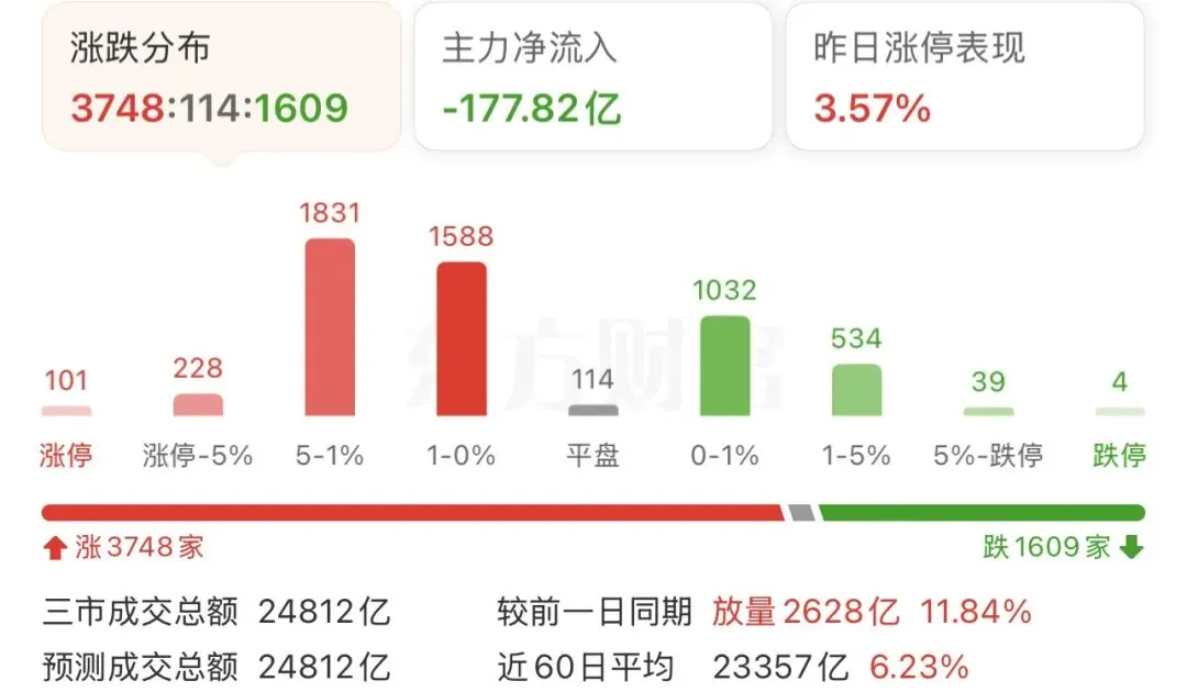 涨跌比3748:114:1609,涨停101个,跌停4个。主力净流出177亿。【上证指数】:MACD死叉,第19根绿柱,cci94。boll线站上中轨。【创业板指】:MACD死叉,第21根绿柱,cci123;boll线站上中轨。【上证30分钟】:(向上,跳空缺口,8根K线,4根阳线,4根阴线)。二、国债、人民币、融资融券30年国债ETF:115.444,跌0.35%。
