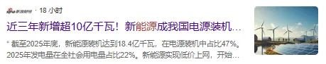 国家能源局已明确2026年新增风电、太阳能发电装机2亿千瓦以上的目标,并围绕新型储能、智能电网等领域加大政策支持,为行业增长提供了清晰的量级指引和制度保障。