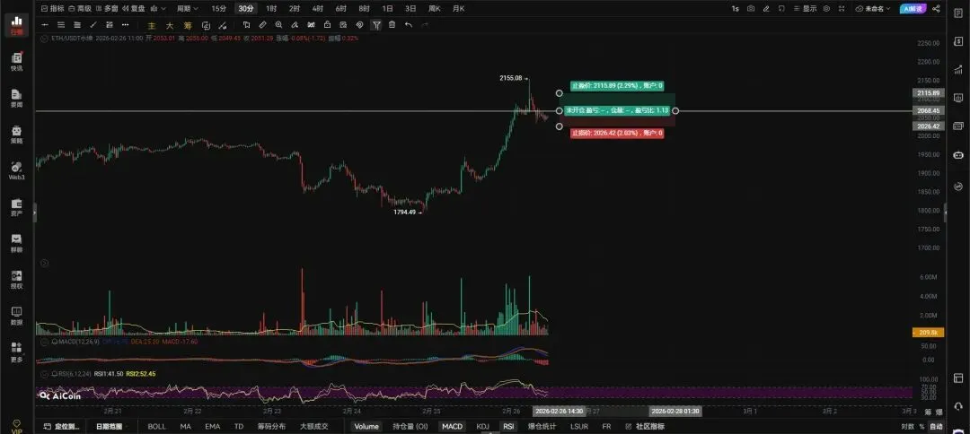 二饼带量突破2068右侧追多,收回止损。