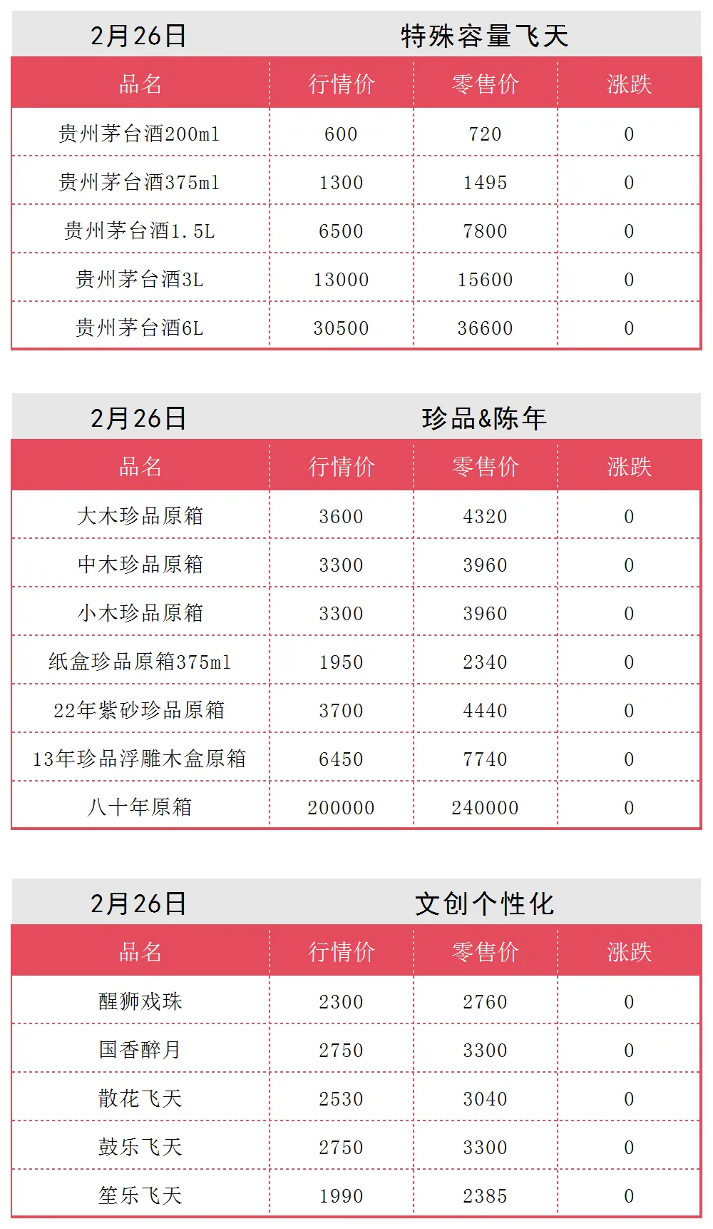 贵州飞天茅台2月26日最新行情报价,各类茅台系列酒茅台二十四节气【黔酒数据】