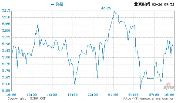 2月26日(周四)亚盘,今日金价银价延续昨日涨势,伦敦现货黄金价格小幅走高,目前交投于5190美元/盎司上方。昨日周三(2月25日),黄金冲高回落,收盘微涨0.4%报5164美元,日内一度触及5218美元后跳水逾60美元。特朗普国情咨文坚推关税议程并暗示以关税取代所得税,美伊周四日内瓦谈判在即,双重不确定性支撑避险;但美元仅小幅走弱,金价上行受限。24小时国际黄金价格走势图
