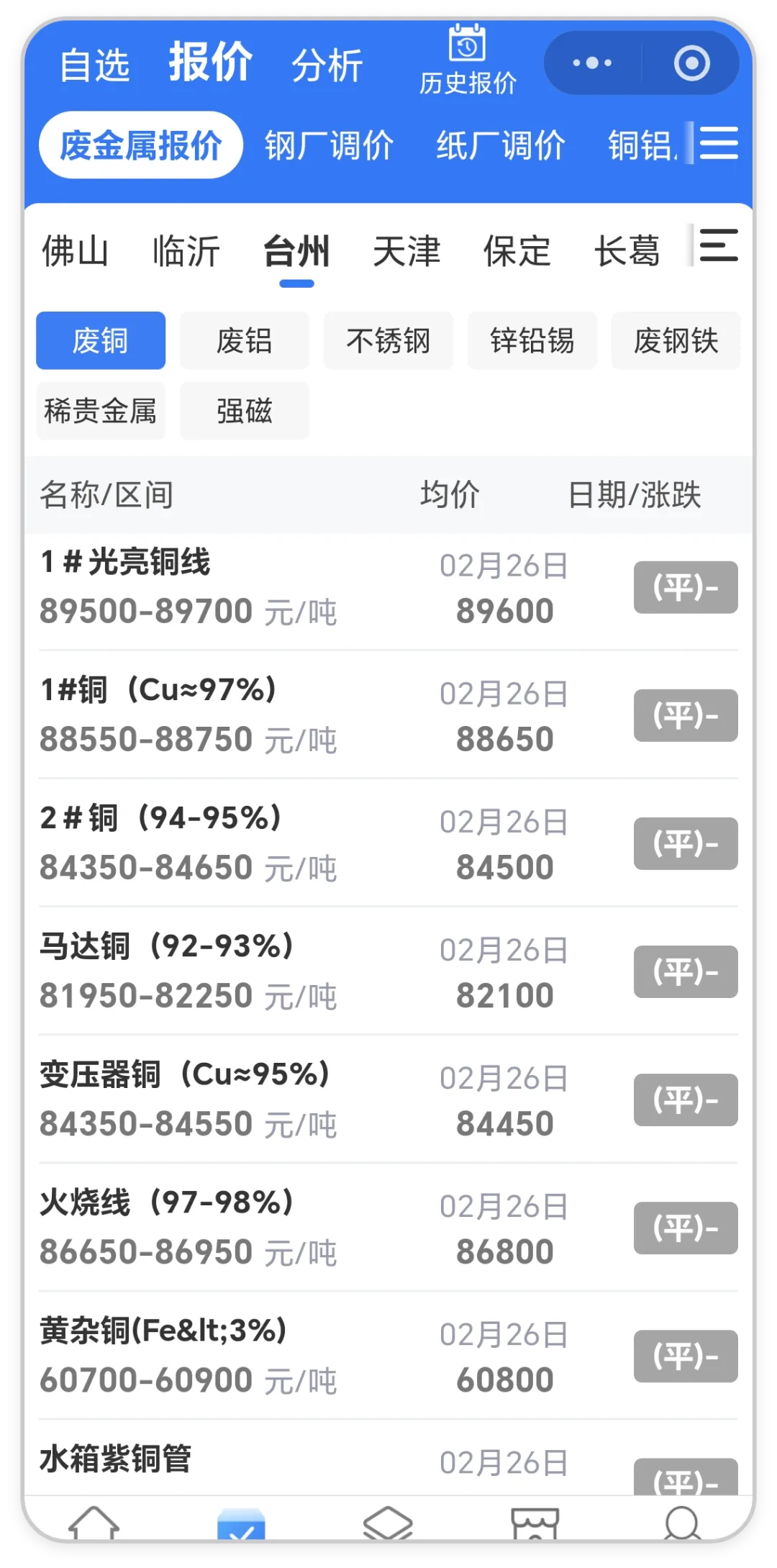 看更多地区废铜价格