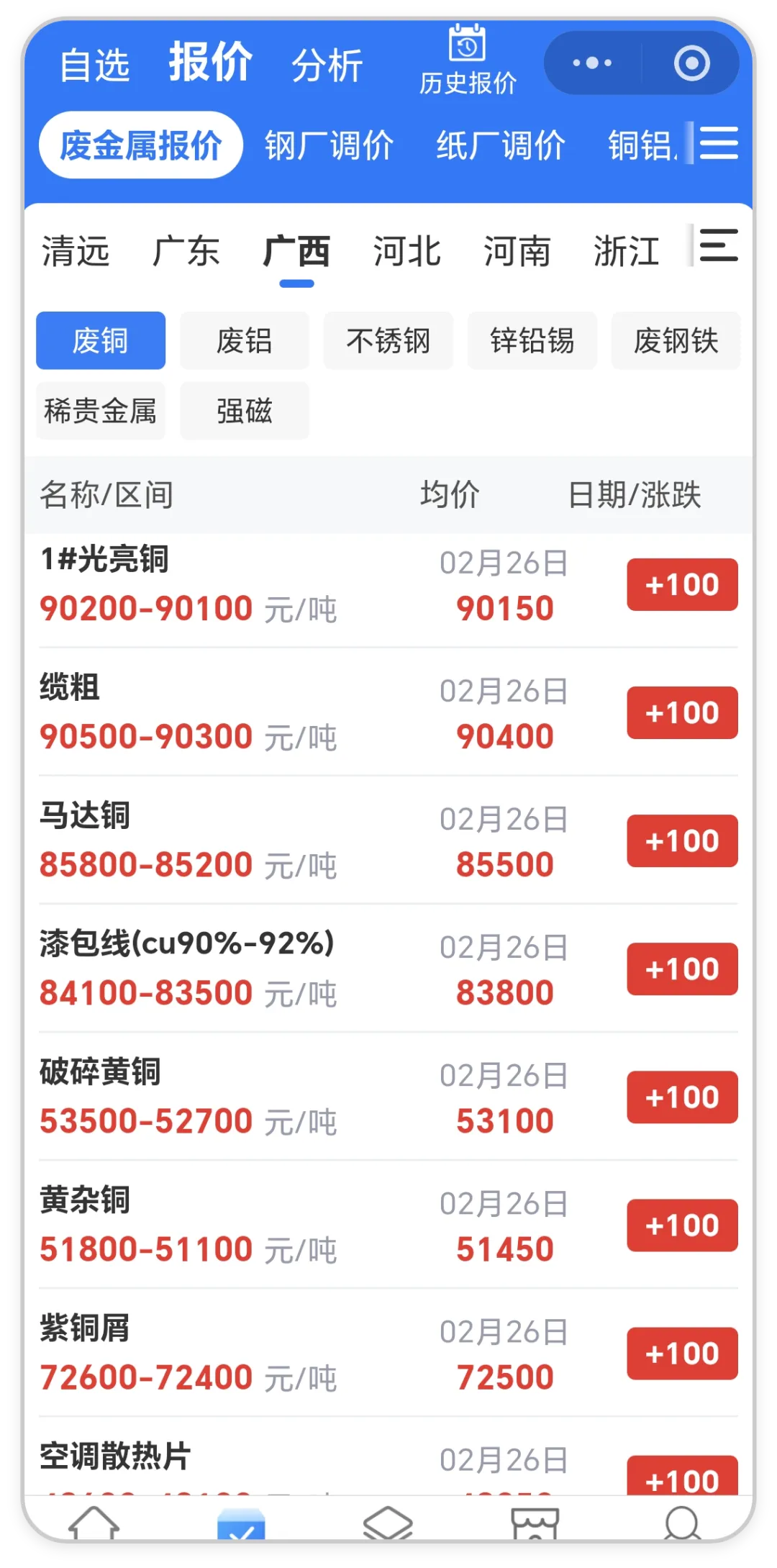 看全国地区废铜价格