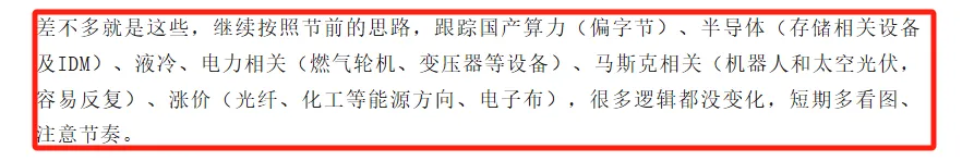加上我自身觉得比较不错的方向,国产算力、液冷、半导体设备(这些逻辑都没变,短期更多是资金面导致节奏上的差异)、国产电力设备(155)