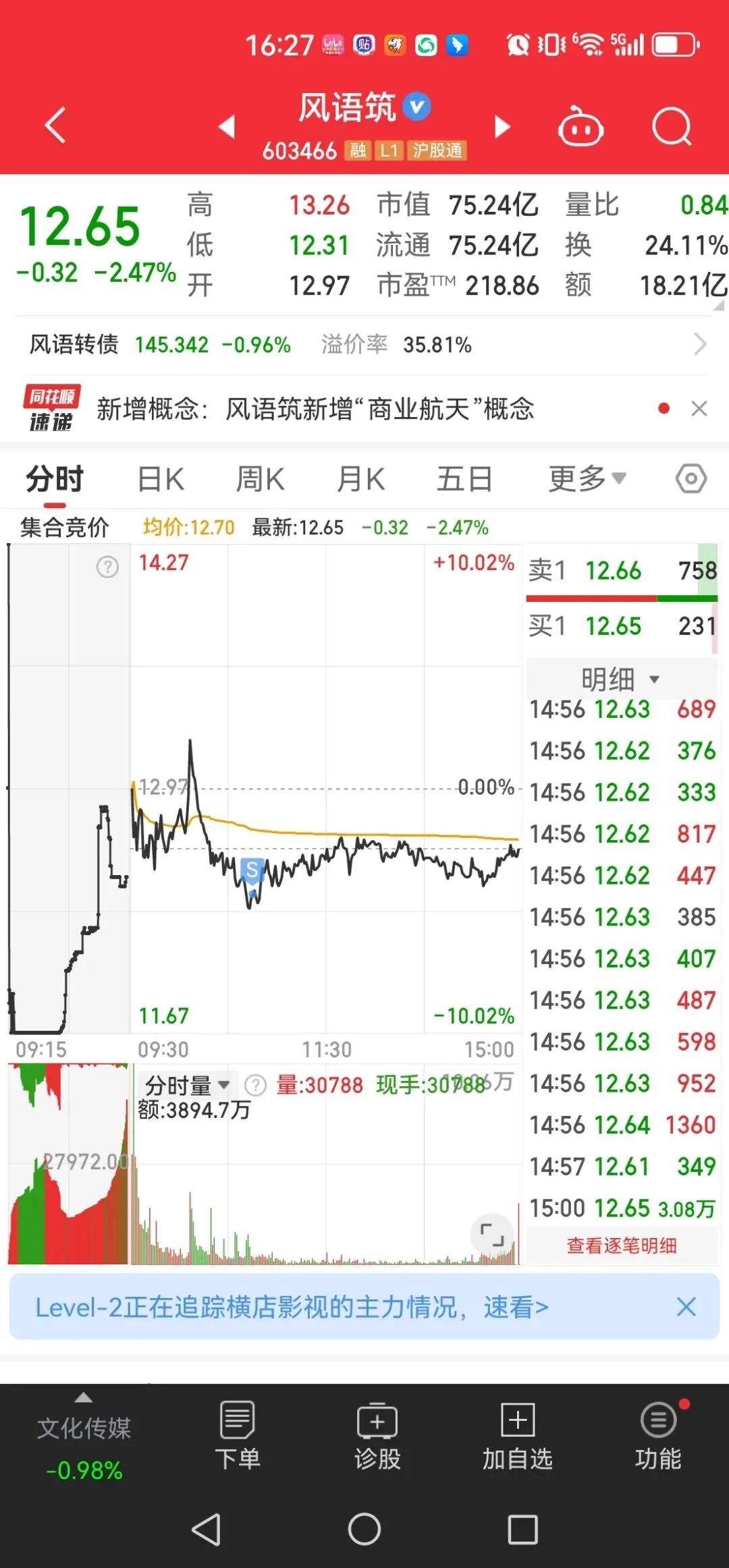 1.卖风语筑:昨天博弈失败后,今天表现更差,割了。