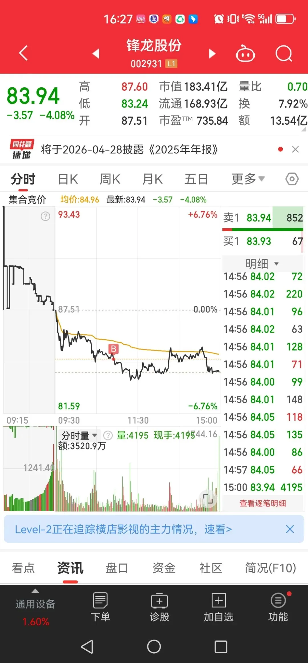 3.买锋龙股份:博弈机器人回流,和跌到位了。
