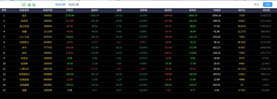 易安交易所今天优选板块的唯一涨停品种是同泽旗下的茗道春合600882,其余品种虽然跌停,但优选板块这几只票的优点很明显,就是在震荡中跌停,而不会开盘跌停闷人,至少是说明了,看不好某支票的想走人随时可以走。