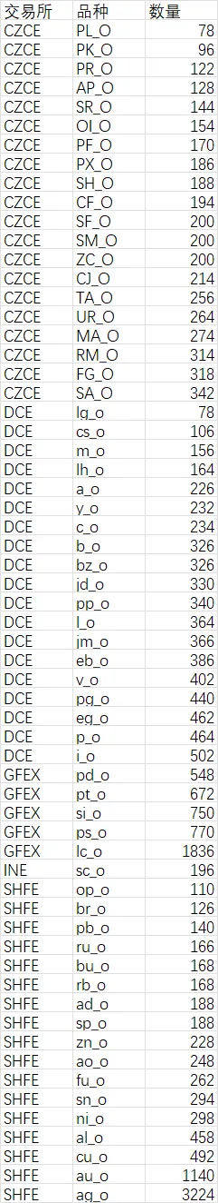 具体各品种合约数量如下: