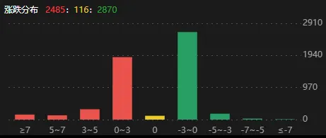 今天的盘面,上涨2400家、下跌2800家,分布上虽然有分歧和犹豫,但是不存在恐慌,跌幅大的很少。