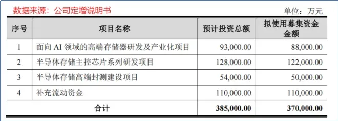 本次江波龙定增募得的资金,将用于公司三个项目研发或建设以及补充流动资金;用于补充流动资金的比例为29.73%,接近30%的上限。