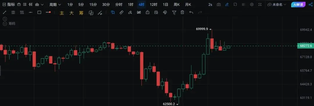 大家好我是你们的老朋友陈栋,我们先回一下今日的行情:凌晨阶段市场情绪全面回暖,大饼自67000附近企稳上行,最高触及69999一线,虽未成功站稳70000关口,但整体反弹幅度近3000点,同步以太由2005附近拉升至2155一线,涨幅超150点,此前晚盘给出的空单思路触发止损,走势与预判出现背离,随后及时调整策略转向多单布局,不仅回补前期回撤,还实现额外盈利,整体操作节奏把握得当,落袋为安即可。