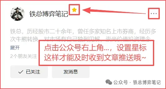 由于推送机制变化可能收不到消息,请各位粉丝务必点击公众号右上角三个点“...”,设为星标,这样才能最快速度收到文章推送哦,如下图~