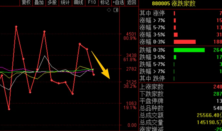 两市上涨的个股2400只,下跌的股票则有2800只,也就是说下跌的股票多余上涨的家数。这跟昨天对比,显然市场情绪有进一步降温的动作。