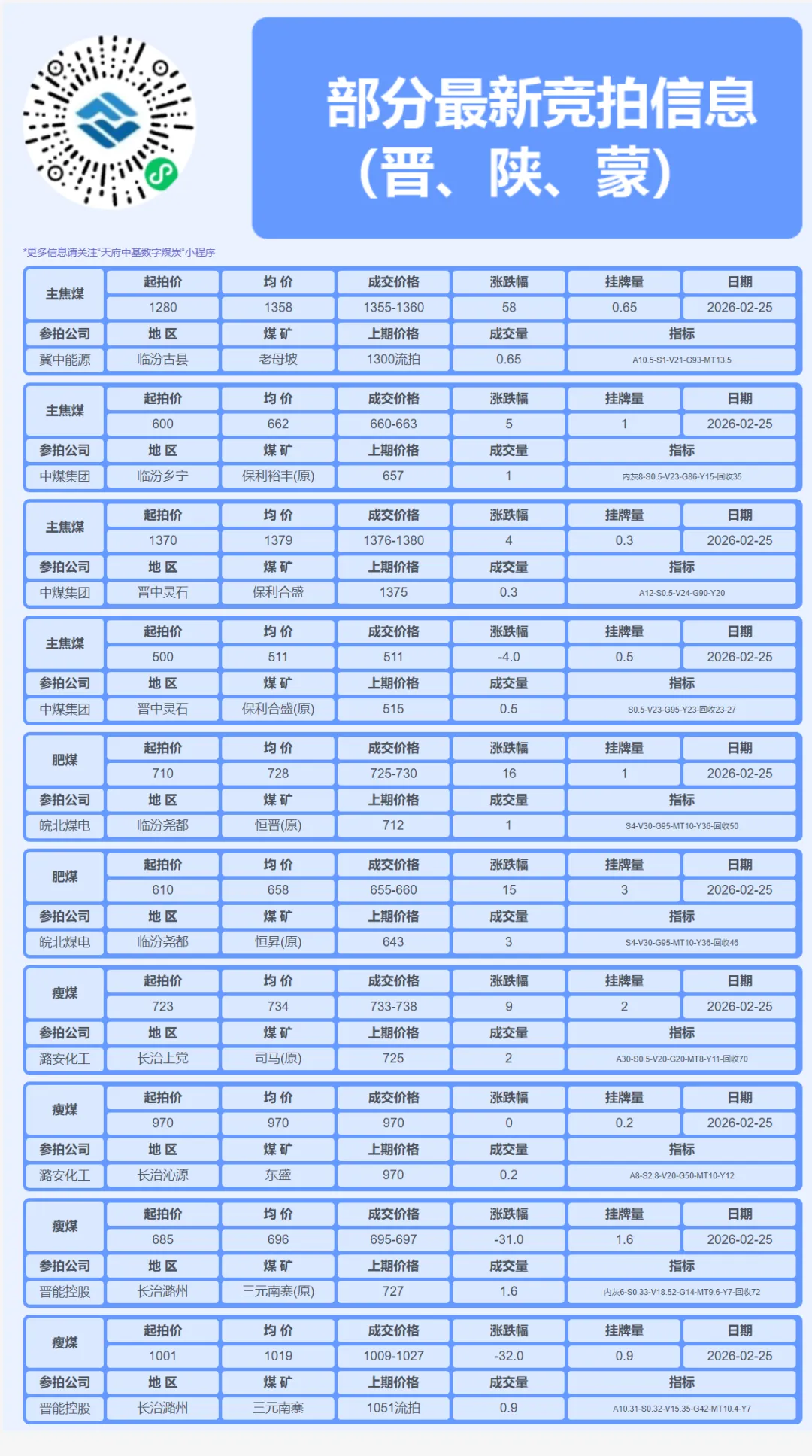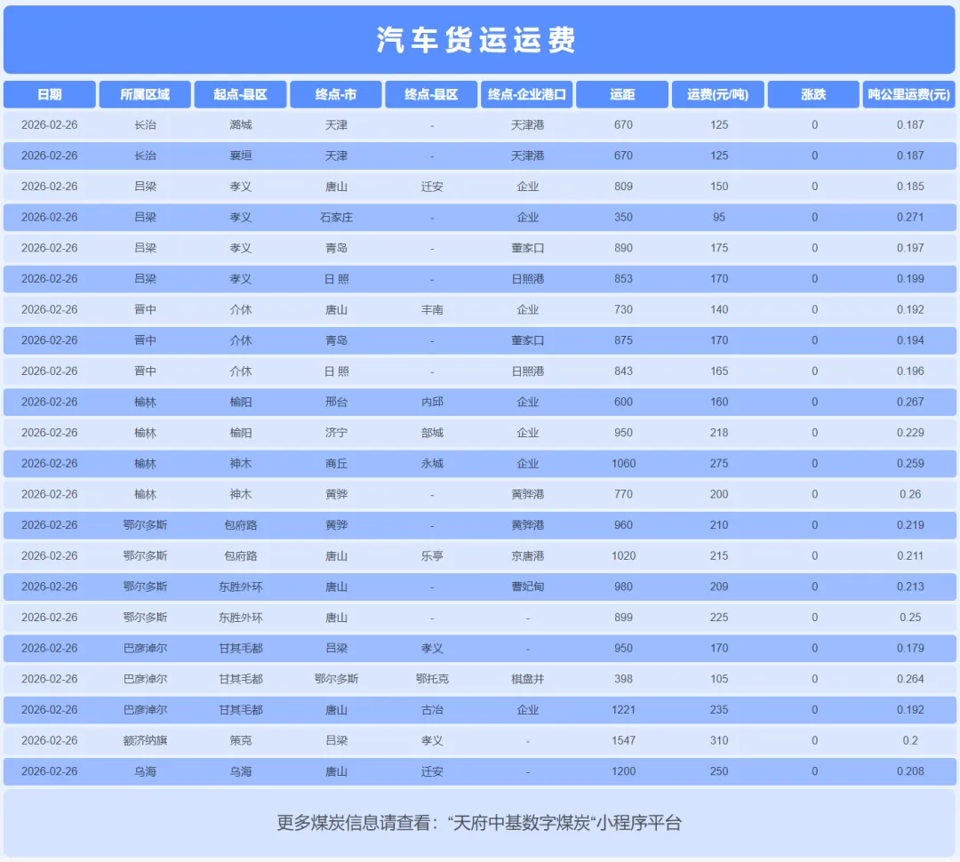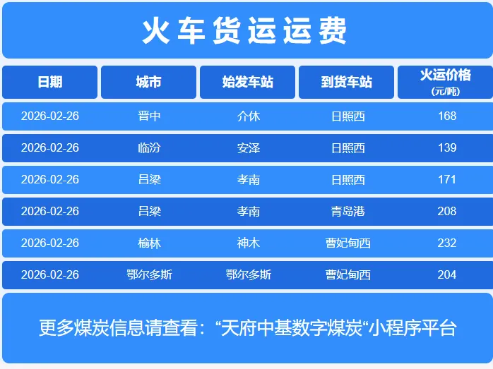 2026年2月26日,焦煤焦炭市场呈现 “内稳外弱、分化加剧” 的典型节后特征。国产焦煤价格全线持稳,山西低硫主焦煤出厂含税价维持在1553元/吨,中高硫主焦及配煤价格亦无变动。然而,进口蒙煤市场显著走弱,甘其毛都口岸蒙5#原煤和蒙3#精煤分别下跌9元/吨和45元/吨,跌幅扩大。焦炭市场各环节价格则全面持平,上下游博弈陷入僵局。